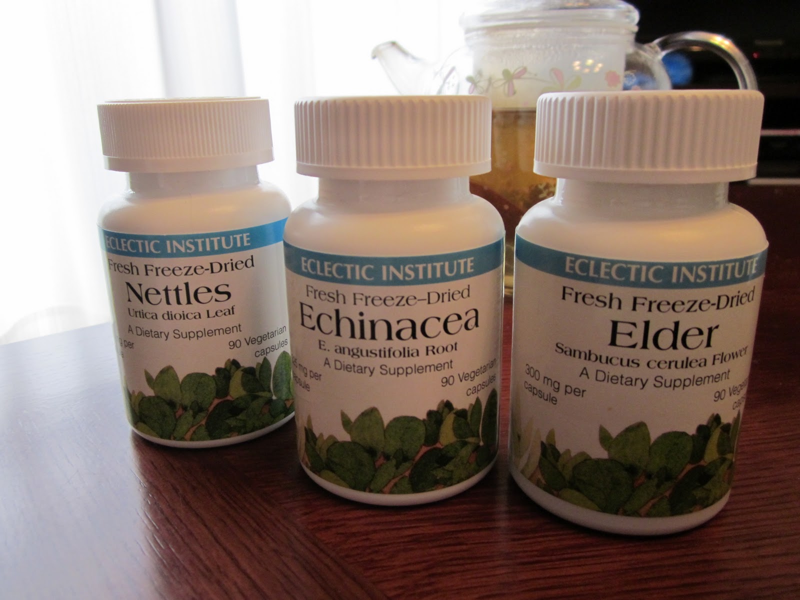 このようにサプリを常備しておくのもドライハーブを切らしたときなどに助かります。(特にエキナセアとエルダーはお勧め。)