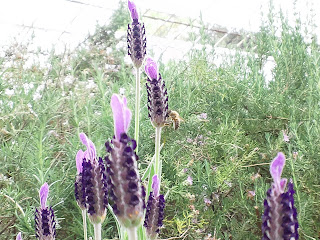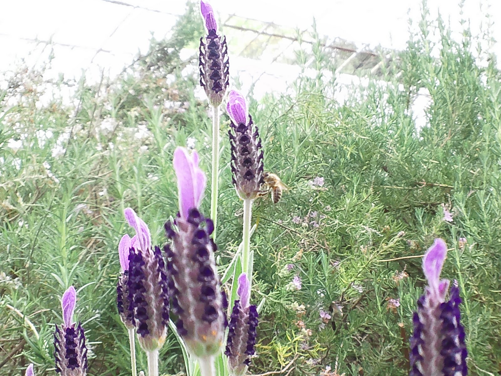 ラベンダーですね。 ちょっとお勉強は休憩(^^) 蜂さんも蜜を吸いながら楽しそうに飛び回っています♪ |