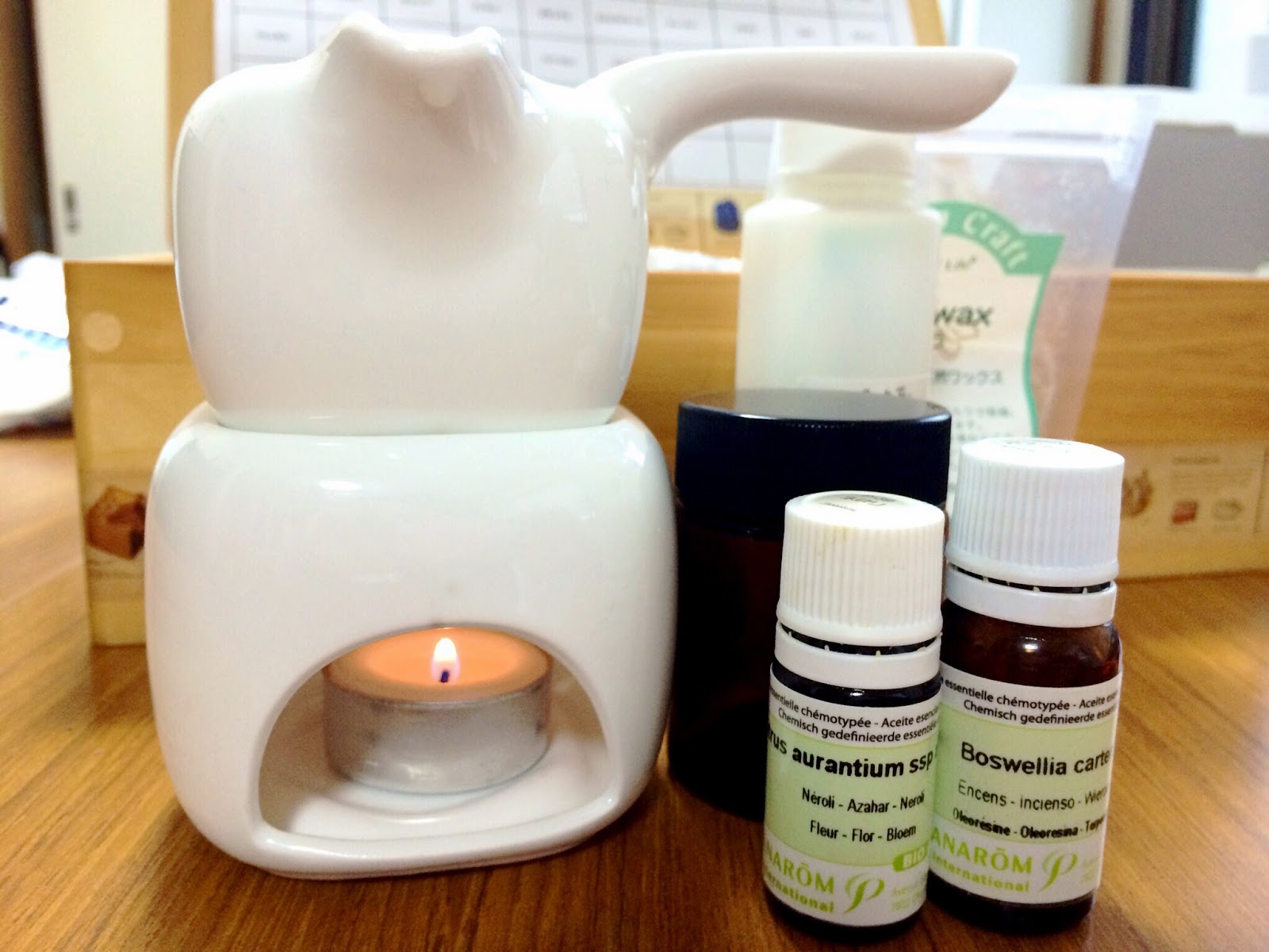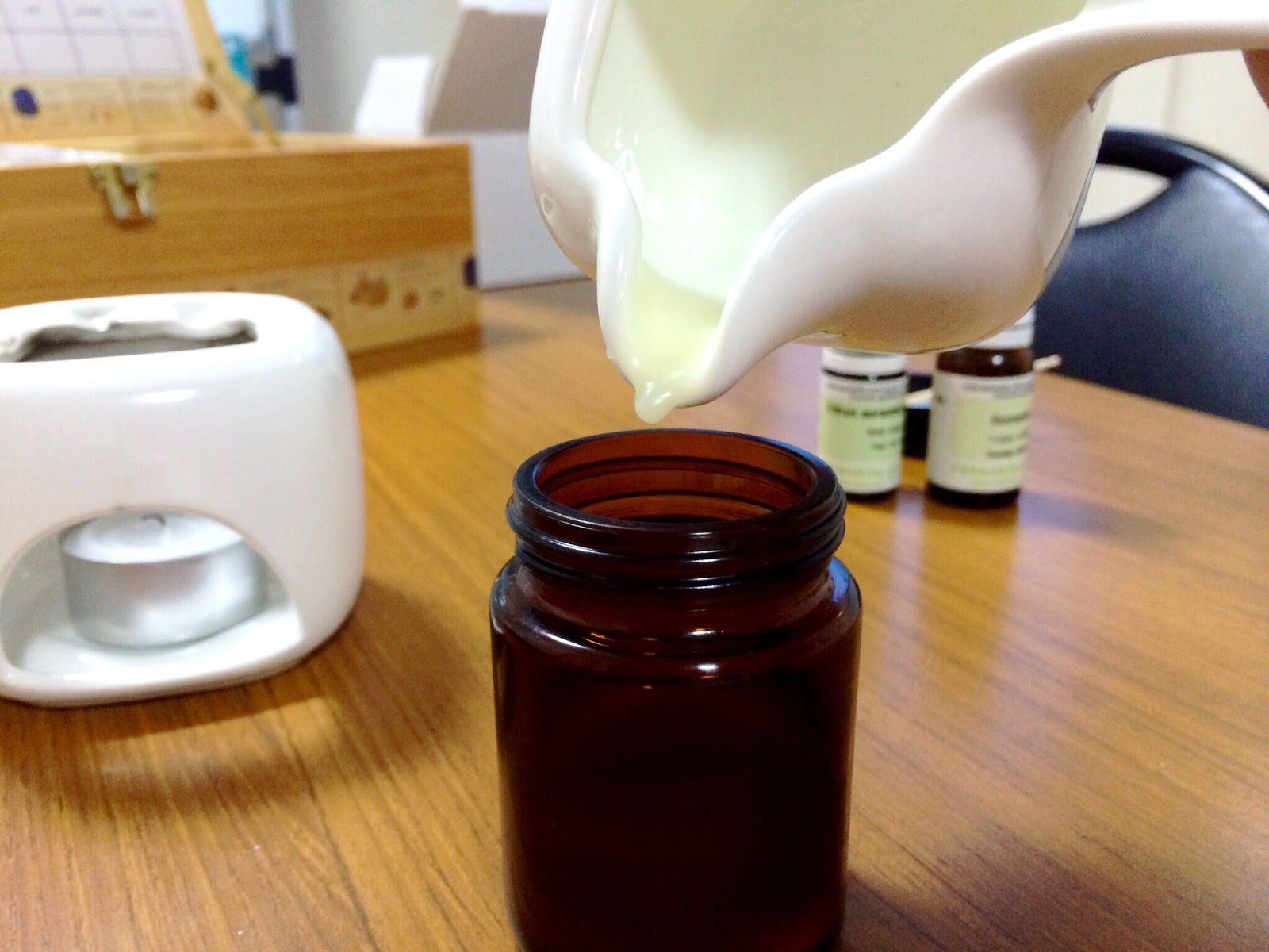 以前作っておいたインフューズドオイルと、みつろう、エッセンシャルオイル