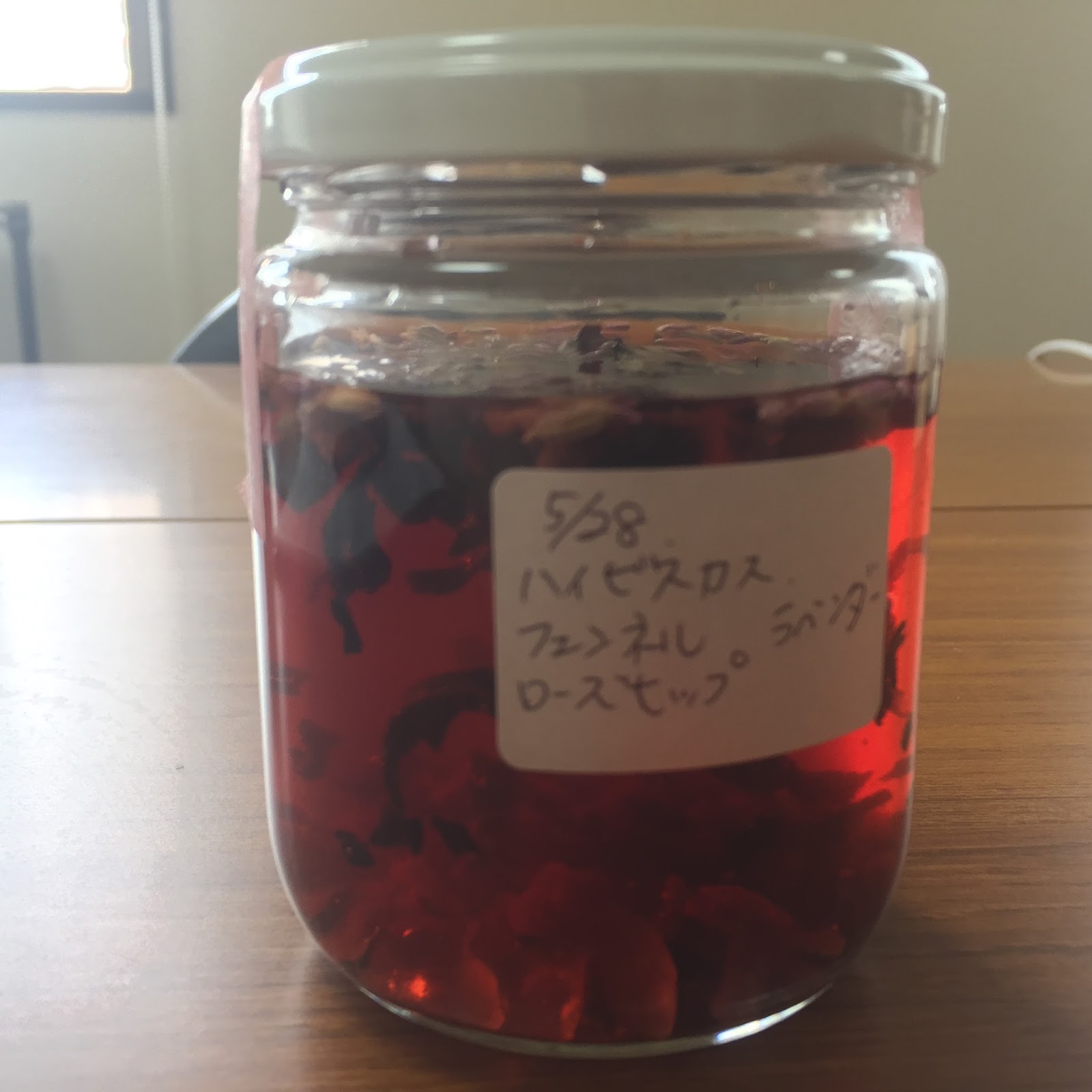 白ワインビネガーを使って、ハーブビネガーを仕込みました
